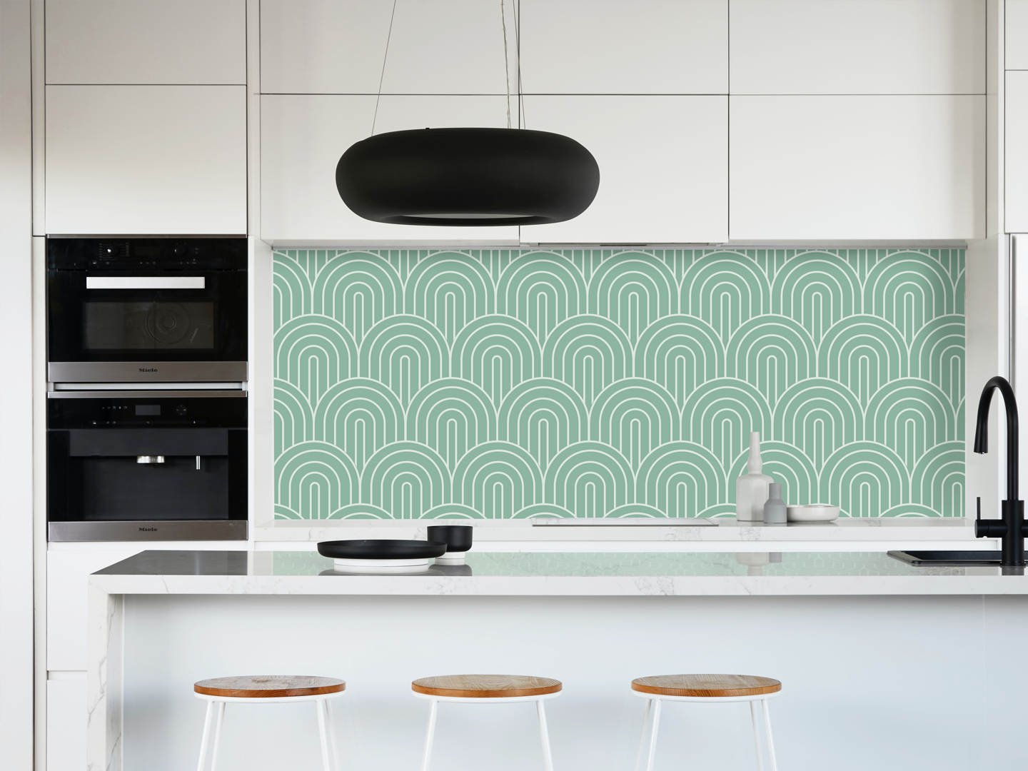 Os painéis de parede impressos podem ser instalados numa cozinha residencial ou comercial, criando um ambiente único e agradável. Além disso, os painéis de parede impressos com a impressão UV da Mimaki são resistentes à humidade e podem ser facilmente limpos, tornando-os ideais para ambientes de cozinha.