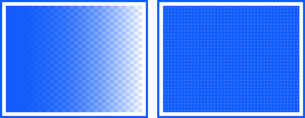 Especialmente as cores sólidas, como as cores spot Pantone pré-definidas, são produzidas menos suaves e com mais ruído usando métodos de difusão padrão.