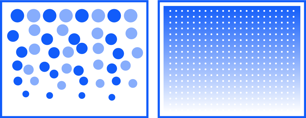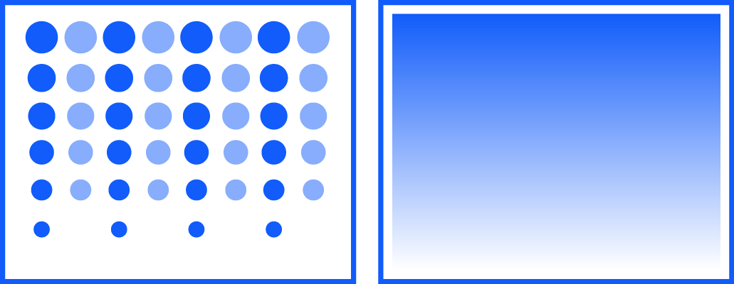 With every pass, MAPS is using a unique algorithm calculating the most effective way of jetting the ink drops to avoid visible banding. This is constantly changing depending on ink colour, density and printing speed.